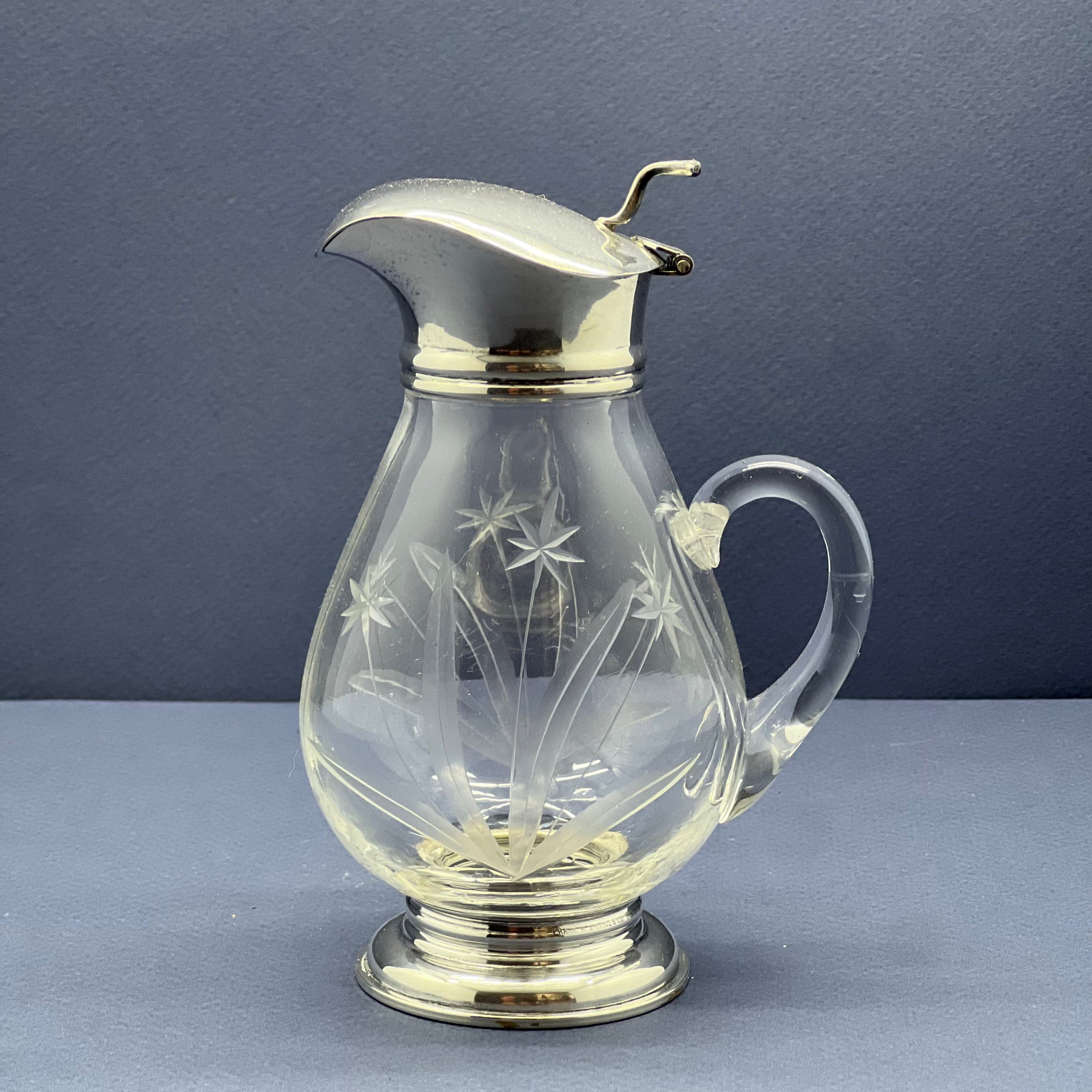 A Frank W Whiting & Co sterling silver mounted crystal lidded jug.