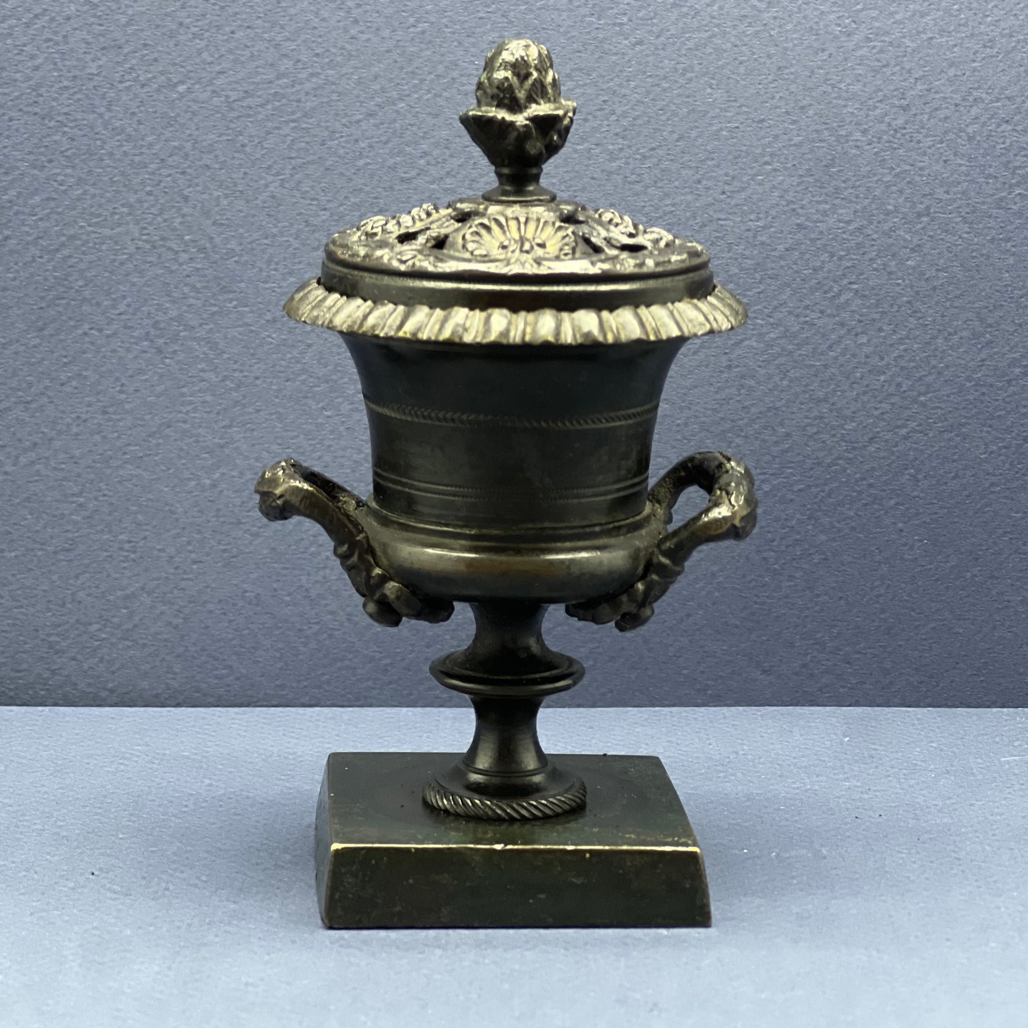 An English Regency grand tour patinated bronze pastille burner.