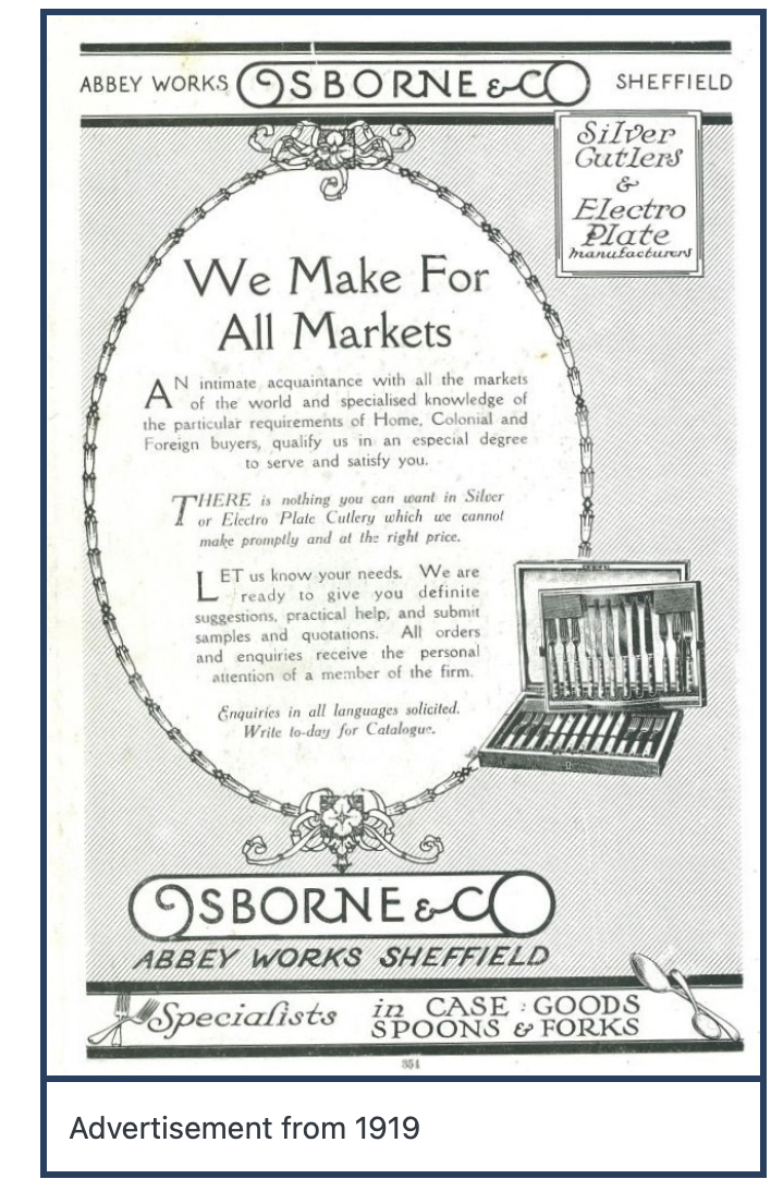 The stainless steel blades stamped : Osborne & Co Silver Cutlers Sheffield. Abbey Stainless.